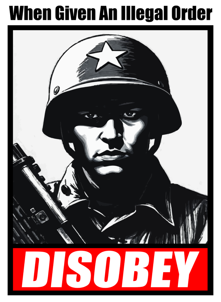 Click the image above to download a high-resolution copy and distribute it far and wide, especially to friends and family in the service. The QR codes go to a video of a seminar on illegal orders and an FAQ on the illegal orders (links to both sites below). Come back often to find additional information and resources to help resist the illegal and unconstitutional acts being taken by the Trump administration.